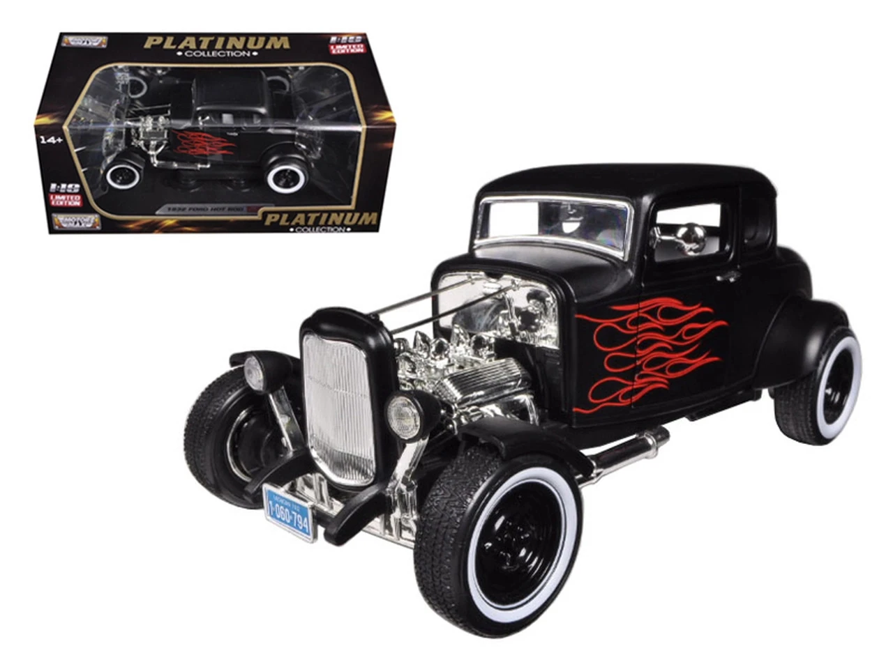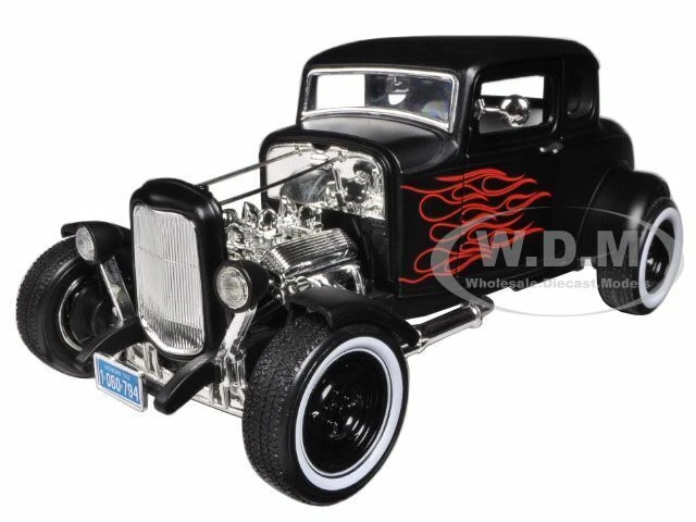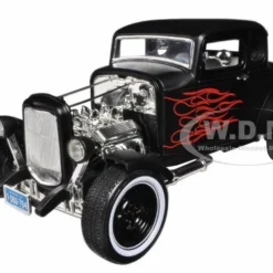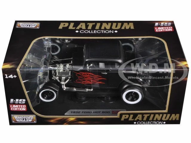 - Brand new 1/18 scale diecast car model of 1932 Ford Hot Rod Matt Black with Flames Limited Edition “Platinum Collection” die cast model car by Motormax.