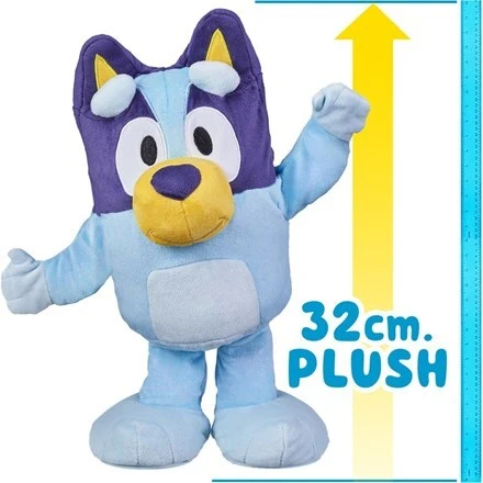 Ready… Set… Dance Mode! Get your dancing shoes on, turn up the volume and get ready for good times! Play along with Bluey as she hops, waves and dances! Dance And Play Bluey is a fun animated Plush toy with over 55 phrases! Dance and sing along with Bluey to 4 different songs! See if you can beat Bluey at 3 of her favourite games! Play Statues, Dance Mode and Copycat with her! Dance and Play Bluey is full of awesome moves! She can hop on one leg, dance and wave her arms in the air! Just press her tummy and and join in with Bluey! Bluey is the perfect size for cuddles. Made with deluxe fabrics and featuring embroidered details, this super-soft plush doubles as a cuddly toy for game-time or storytime.