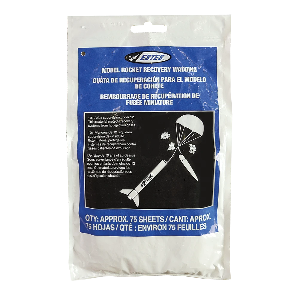 Estes Recovery Wadding keeps your parachute in perfect shape when used properly. The leading cause of unsuccessful flights is failure of recovery deployment.