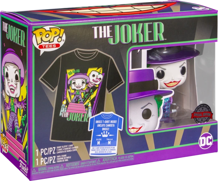 This Pop! Tee Box not only features the EXCLUSIVE Joker with Megaphone Metallic Pop! Vinyl Figure, but you’ll also receive this amazing Joker Pop! Tee.