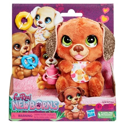 furReal Newborns interactive pets are small, irresistibly cute plush pals just waiting to find their forever home! When given their feeding accessories and booped on the nose, these lovable newborns respond by closing their eyes and making happy, contented sounds. These sweet little interactive pets make wonderful gifts for girls and boys ages 4 and up!