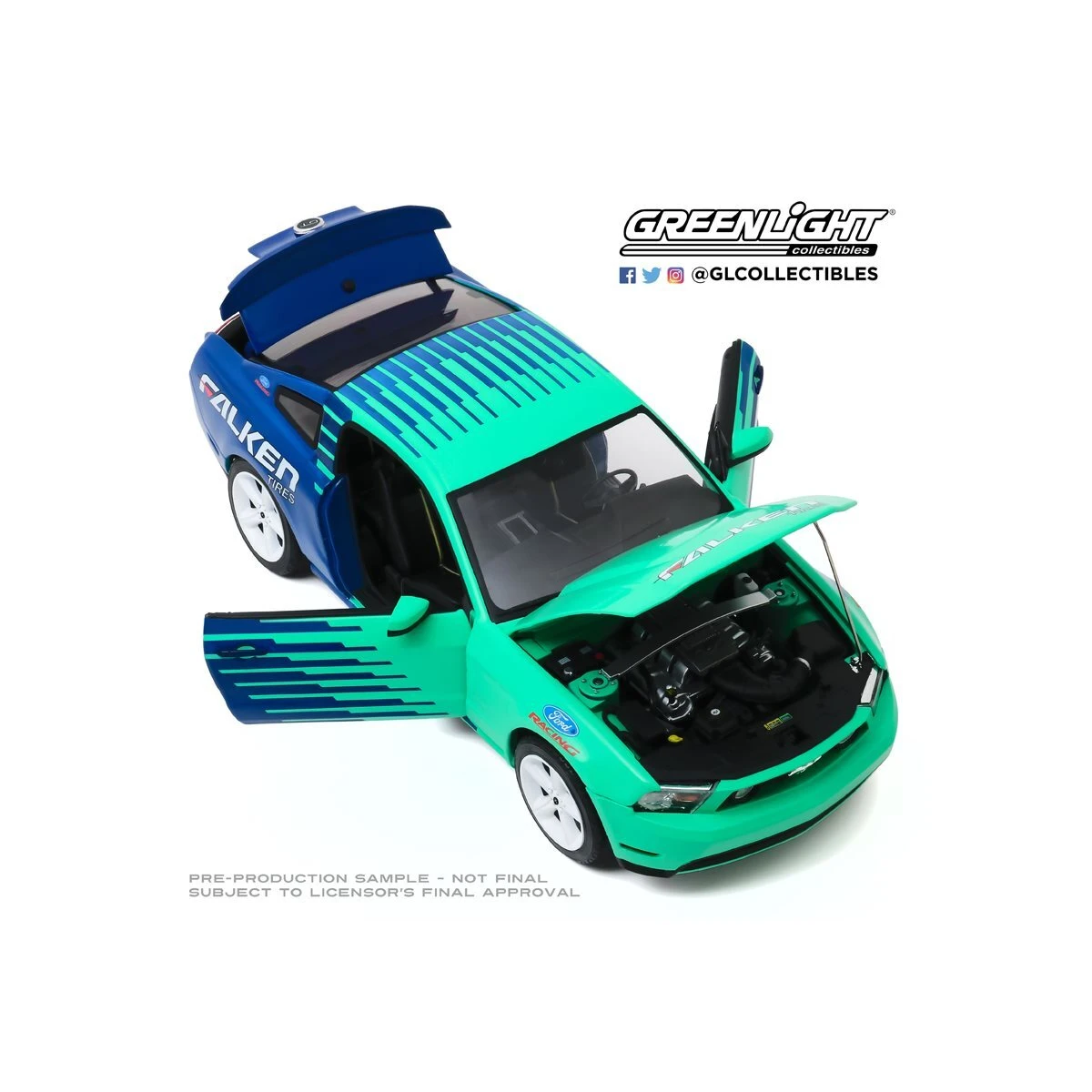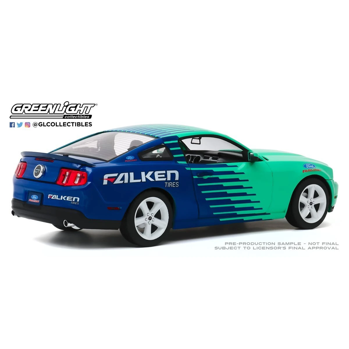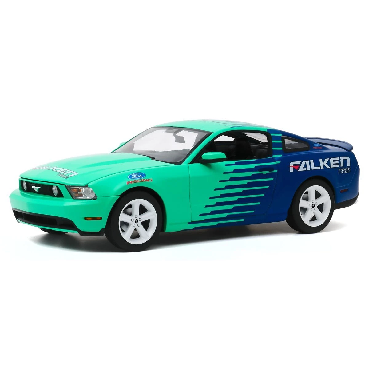 Show off your automobile collector fandom with this Falken Tires Die-Cast Metal Vehicle! This replica is made in the 1:18 scale of the 2010 Ford Mustang GT! Ages 17 and up.