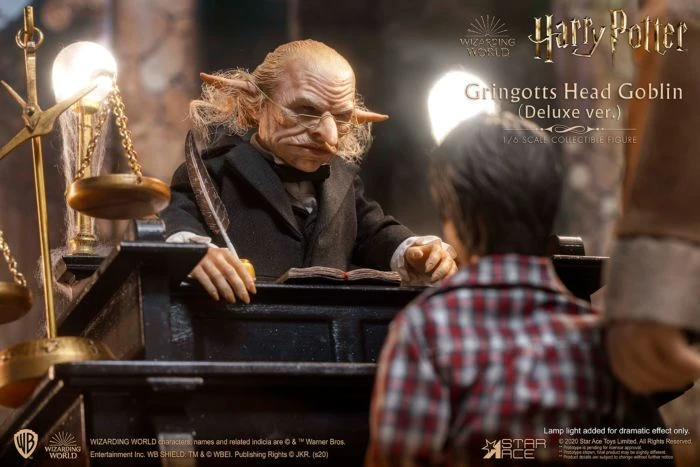 Unlock the vast secrets of wealth of Gringotts Wizarding Bank with the Gringotts Head Goblin Deluxe 1/6th Scale Action Figure by Star Ace Toys.