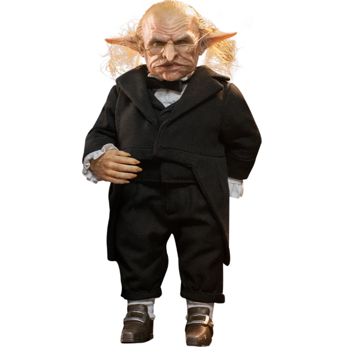 The Gringotts Head Goblin Deluxe 1/6th Scale Action Figure features an all-new hand-painted portrait with the likeness of Warwick Davis made up as the Head Goblin, and comes dressed in his black suit. The sixth scale figure stands approximately 7.68” tall with a full range of articulation and a wealth of accessories so you can recreate the magical scenes in your Harry Potter collection.