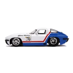Check out this awesome Chevy Corvette Stingray 1963 1/24 Scale Die-Cast Vehicle Replica! The model features real rubber tyres, opening doors, and opening bonnet, along with a detailed interior and iconic racing decals.