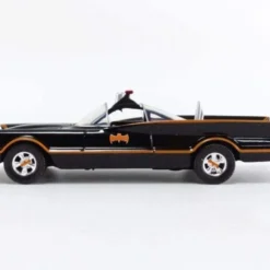 Based on its appearance in the classic Batman TV series, the 1966 Batmobile has been created with a die-cast body and rubber tyres. The iconic vehicle features a sleek black paint job and orange trim, along with that curved bubble-like windscreen that fans know and love. It’s loaded full of detail, from the shiny chrome-like wheels, to the classic Batman decal on the doors. It even includes a die-cast Batman miniature, perfect for completing your Batmobile display!