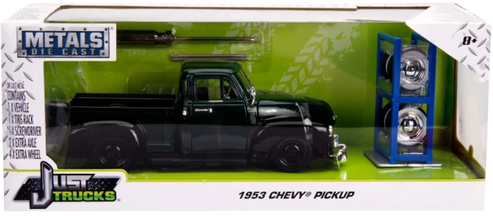 Just Trucks – Dark Green 1953 Chevy Pickup with Tyre Rack 1/24th Scale Die-Cast Vehicle Replica
