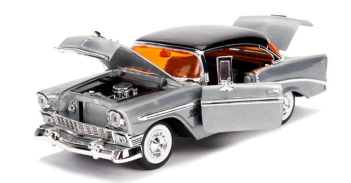 The 1956 Chevy Bel Air has been created with a die-cast body and rubber tyres, featuring rich details and a beautiful metallic paint job. It includes opening doors, hood and trunk, with fantastic looking engine details inside. The vehicle replica also comes with a Mosiac Tile celebrating Jada’s 20th Anniversary, perfect for displaying alongside the iconic Chevy!