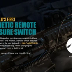 The RWX is our brand-new pressure switch built specifically for the Warrior X, Javelot Pro and M2R Pro – featuring a noiseless and a sensitive pad for perfect switch manipulation. The coiled cable extends the reach of the switch to around 0.8 meters. The RWX is securely connected to the flashlight body magnetically which is a first for the industry. The switch pad includes a long, wide, and tightly wrapped elastic strip allowing the entire surface to easily be activated. The RWX is the perfect weapon attachment accessory for your Warrior X, Javelot Pro or M2R Pro